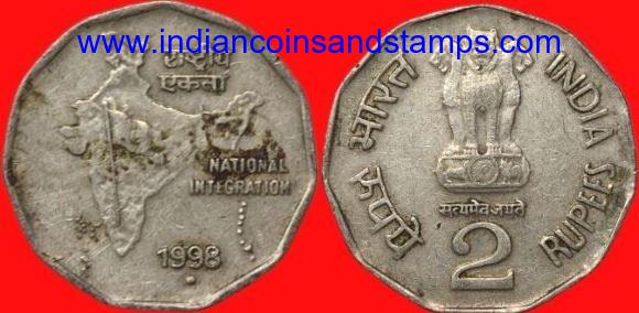2 Rupees 1998 Mumbai Copper Nickel₹75.00 + 5% GST -