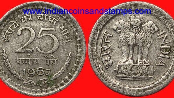 25 Paise 1967 Mumbai Nickel
