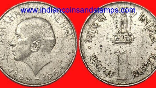 1 Rupee 1964 Jawaharlal Nehru Mumbai Nickel