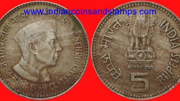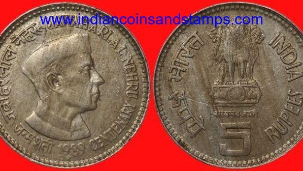 5 Rupees 1989 Jawaharlal Nehru Centenary Mumbai Copper Nickel