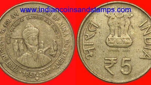 5 Rupees 2007 150 Years Of Kuka Movement Mumbai Nickel Brass