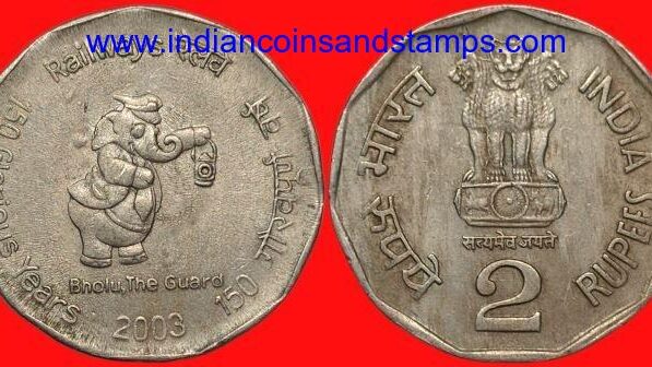 2 Rupees 2003 Indian Railways 150 Glorious Years Mumbai Copper Nickel