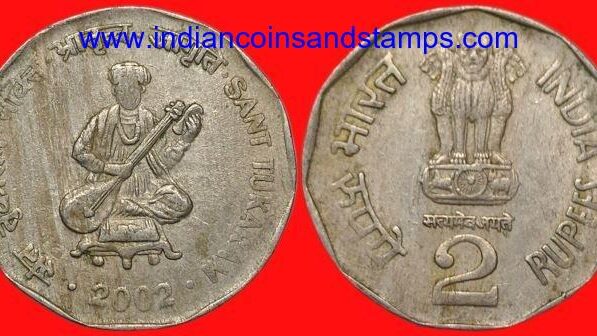 2 Rupees 2002 Sant Tukaram Noida Copper Nickel