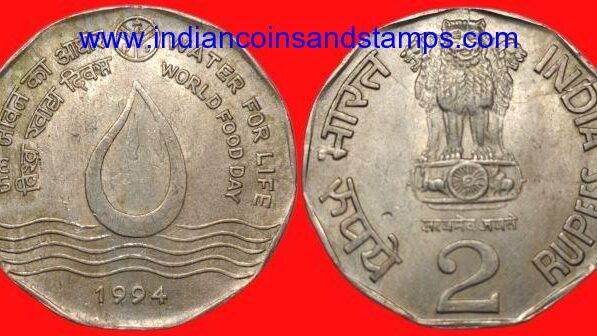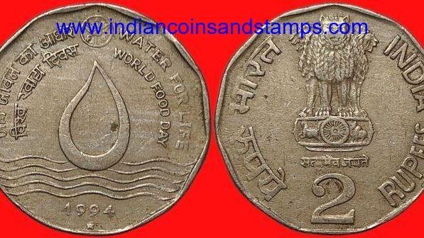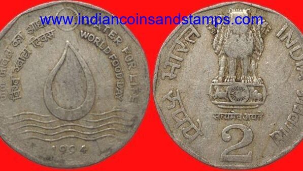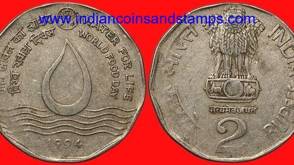 2 Rupees 1994 Water For Life Mumbai Copper Nickel