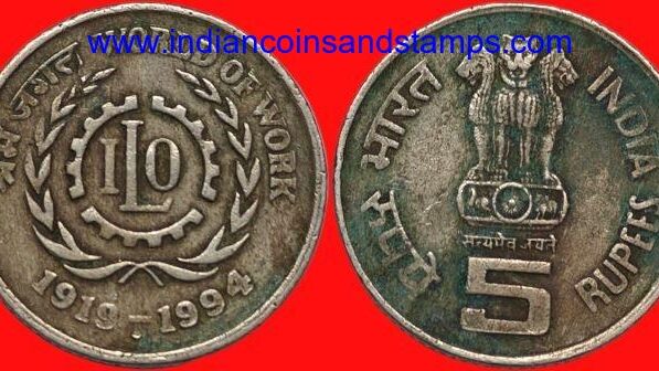 5 Rupees 1994 ILO World Of Work Mumbai Copper Nickel