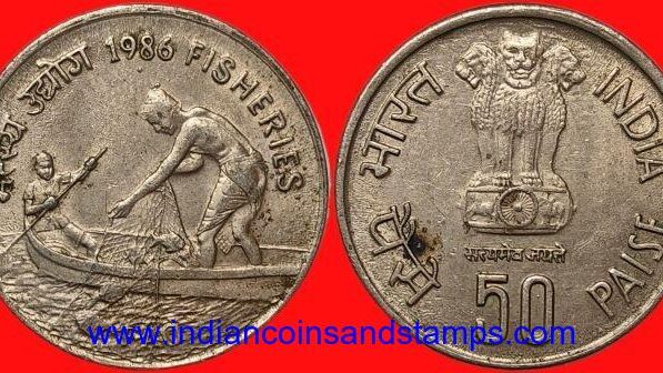 50 Paise 1986 Fisheries Mumbai Copper Nickel