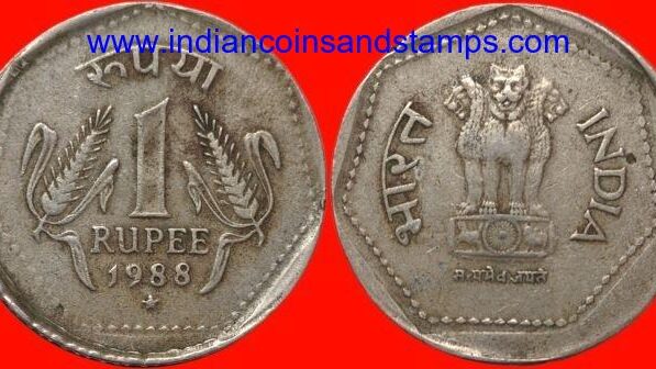 1 Rupee 1988 Hyderabad Shift Error Copper Nickel