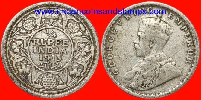 1/4 Rupee 1913 Kolkata Silver