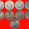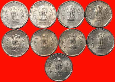1 Rupee 1983 to 1991 Year Wise All Kolkata Complete Set of 9 Coins Copper Nickel