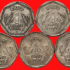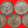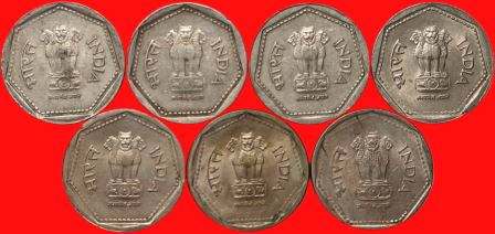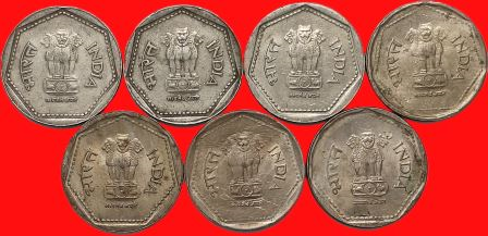 1 Rupee 1984, 1986 to 1991 Hyderabad Year Wise Complete Set of 7 Coins Copper Nickel