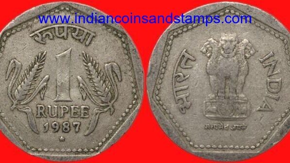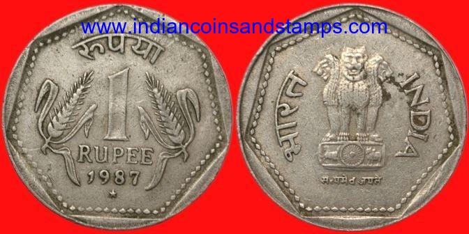 1 Rupee 1987 Hyderabad Copper Nickel