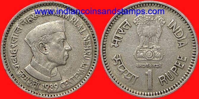 1 Rupee 1989 Jawaharlal Nehru Noida Copper Nickel