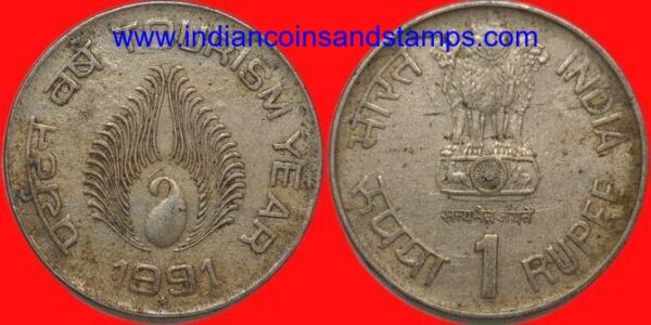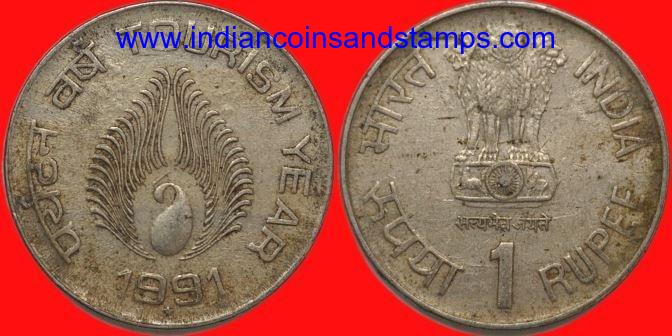 1 Rupee 1991 Tourism Year Hyderabad Copper Nickel