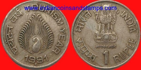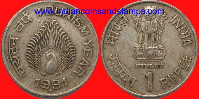 1 Rupee 1991 Tourism Year Mumbai Copper Nickel