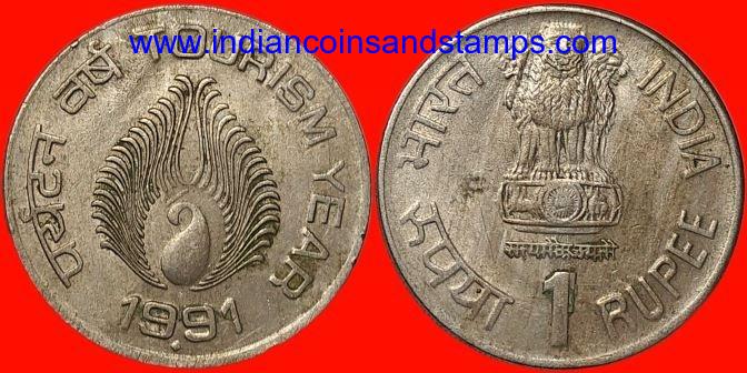 1 Rupee 1991 Tourism Year Mumbai Die Doubling Error Copper Nickel