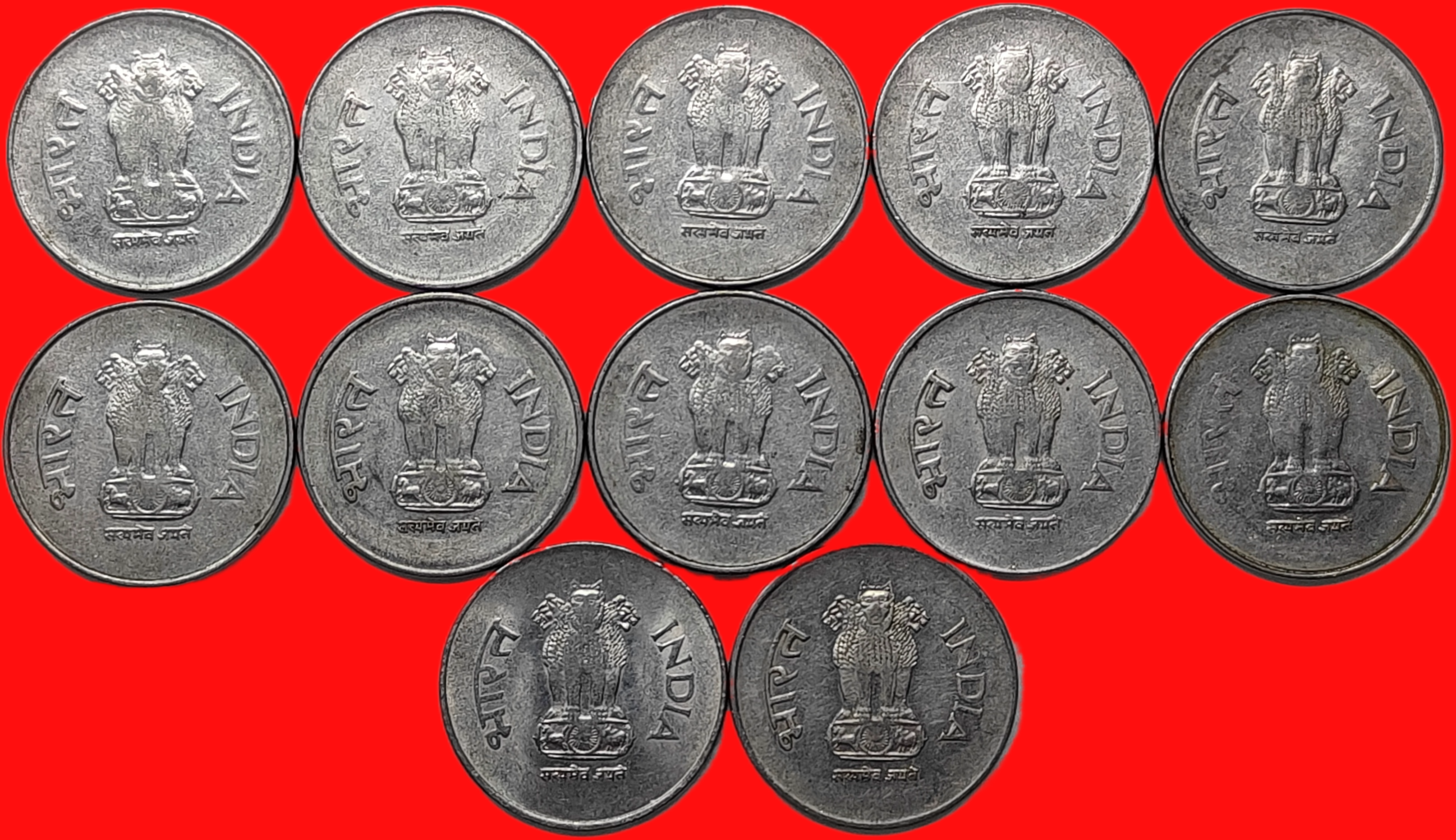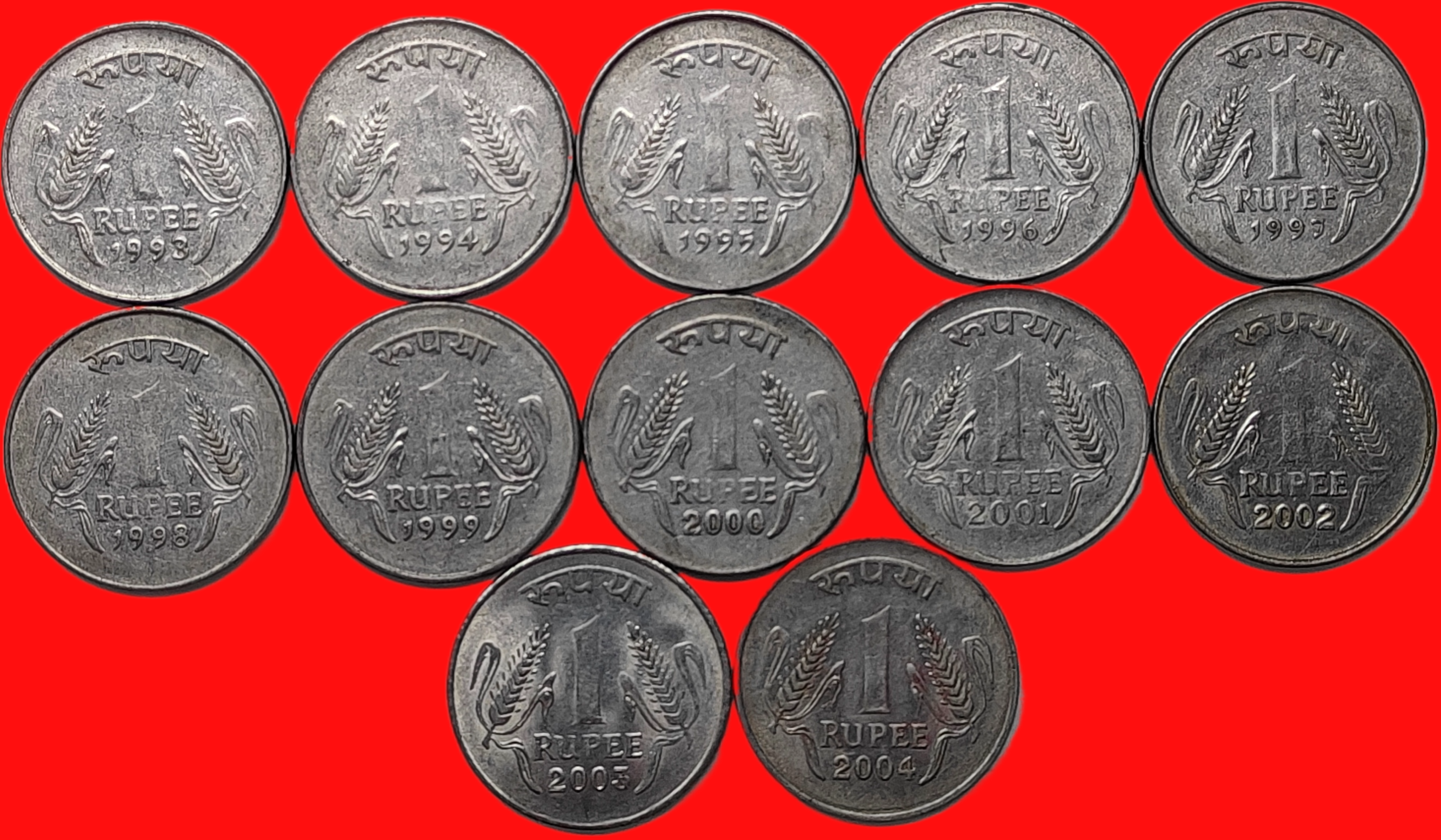 1 Rupee 1993 to 2004 All Kolkata Complete Year Wise Set of 12 Coins Steel