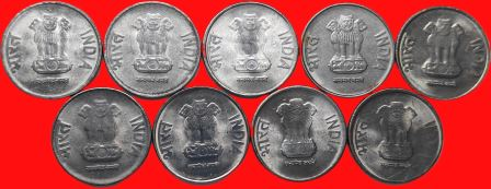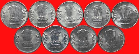 1 Rupee 2011 to 2019 All Noida Complete Year wise Set of 9 Coins Steel