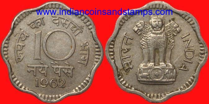 10 Naya Paise 1962 Kolkata Copper Nickel