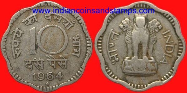10 Paise 1964 Mumbai (Digit 4 Variety) Copper Nickel