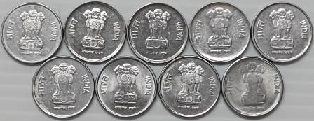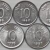 10 Paise 1988 to 1993, 1996-1998 Complete Year wise Set of 9 Coins Steel