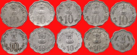 10 Paise Complete Commemorative Set of 10 Coins Aluminium