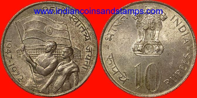 10 Rupees 1972 25th Year of Indian Independence Mumbai Silver
