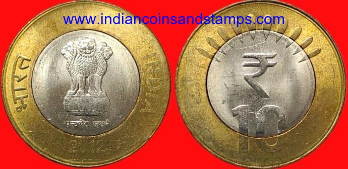 10 Rupees 2012 Noida Weak Mint Mark Nickel Bronze