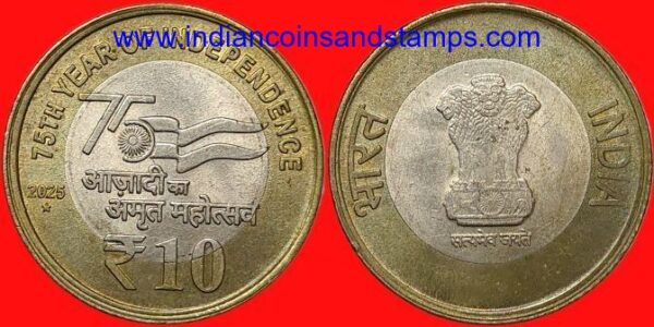 10 Rupees 2025 75th Year of Independence AKAM Hyderabad Shift Error Nickel Brass