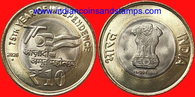 10 Rupees 2026 75th Year of Independence AKAM Noida Nickel Brass