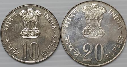 1973 Grow More Food 10 & 20 Rupees UNC Set Silver (Without Certificate and Covers )