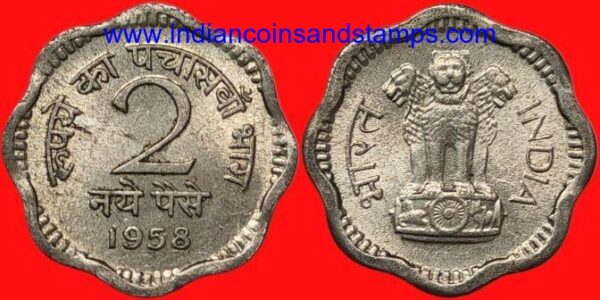 2 Naya Paise 1958 Kolkata Copper Nickel
