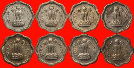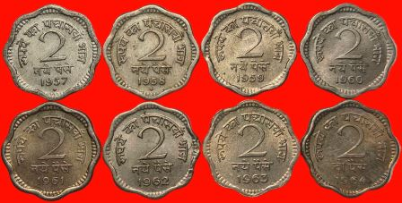 2 Naya Paise & 2 Paise 1957 to 1964 Year wise Complete Set of 8 Coins Copper Nickel