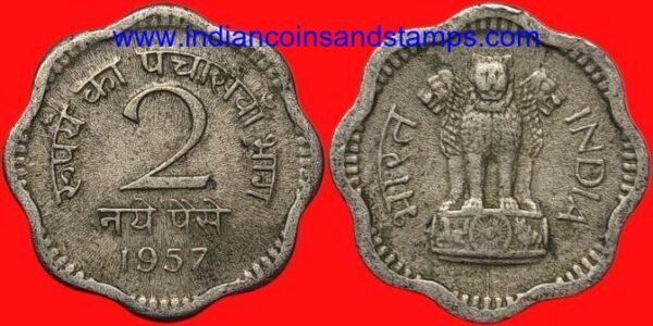 2 Naya Paise 1957 Kolkata Copper Nickel