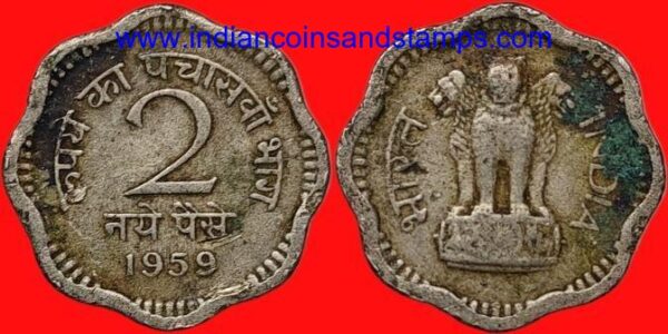 2 Naya Paise 1959 Kolkata Copper Nickel