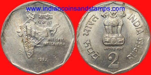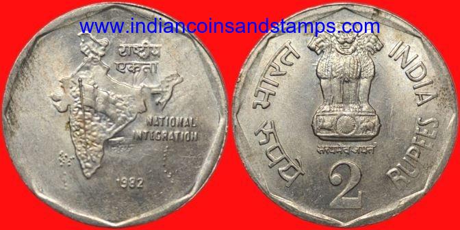 2 Rupees 1982 National Integration Kolkata Copper Nickel