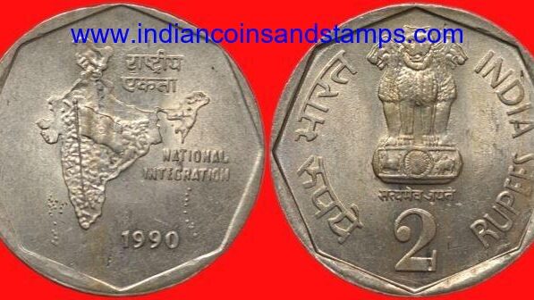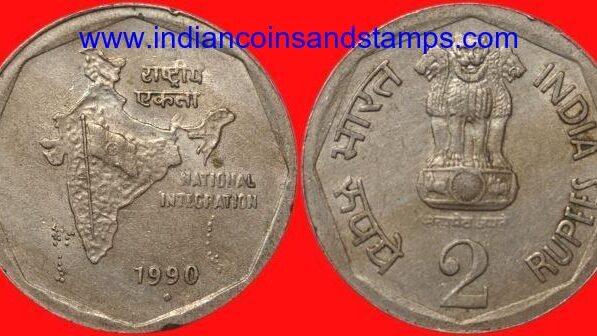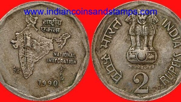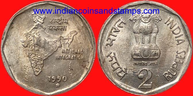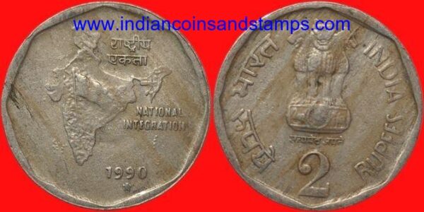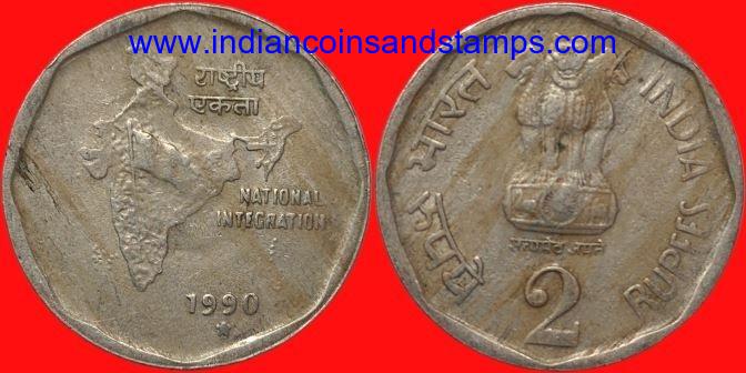 2 Rupees 1990 Hyderabad