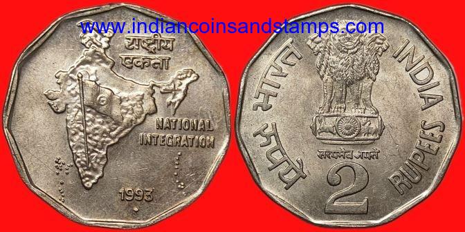 2 Rupees 1993 Mumbai (Slightly Bent Coin) Copper Nickel