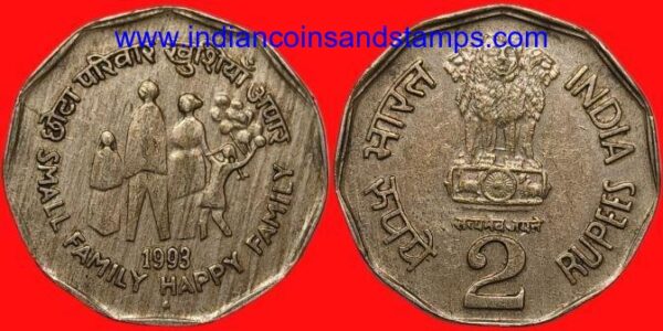 2 Rupees 1993 Small Family Happy Family Mumbai Border Error Copper Nickel