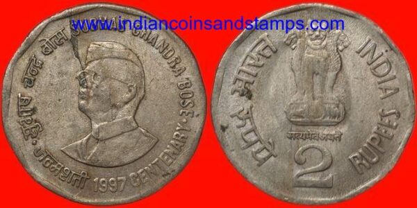 2 Rupees 1997 Subhas Chandra Bose Centenary Kolkata Lamination Error Copper Nickel
