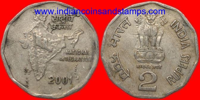 2 Rupees 2001 Mumbai Die Clash Error Copper Nickel