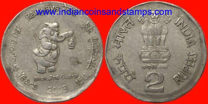 2 Rupees 2003 Indian Railways 150 Glorious Years Hyderabad Shift Error Copper Nickel
