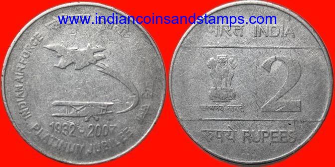 2 Rupees 2007 Indian Airforce Platinum Jubilee Kolkata Steel