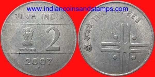 2 Rupees 2007 Unity in Diversity Cross Mumbai Steel