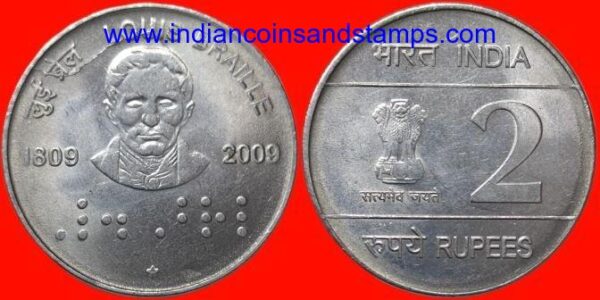 2 Rupees 2009 Louis Brailee Hyderabad Extra Metal Error Steel