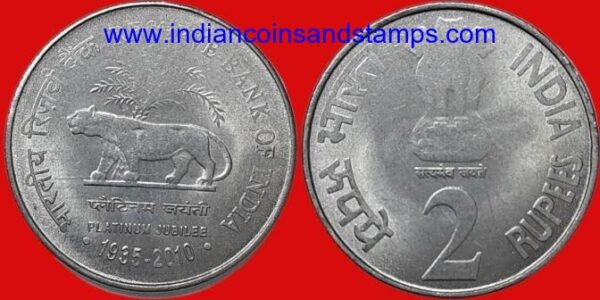 2 Rupees 2010 Reserve Bank Of India Platinum Jubilee Kolkata