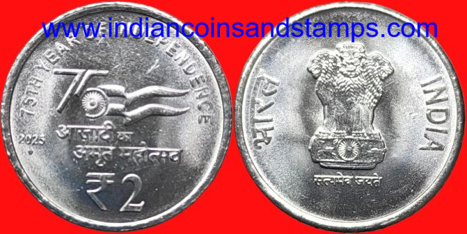 2 Rupees 2025 75th Year of Independence AKAM Mumbai Steel