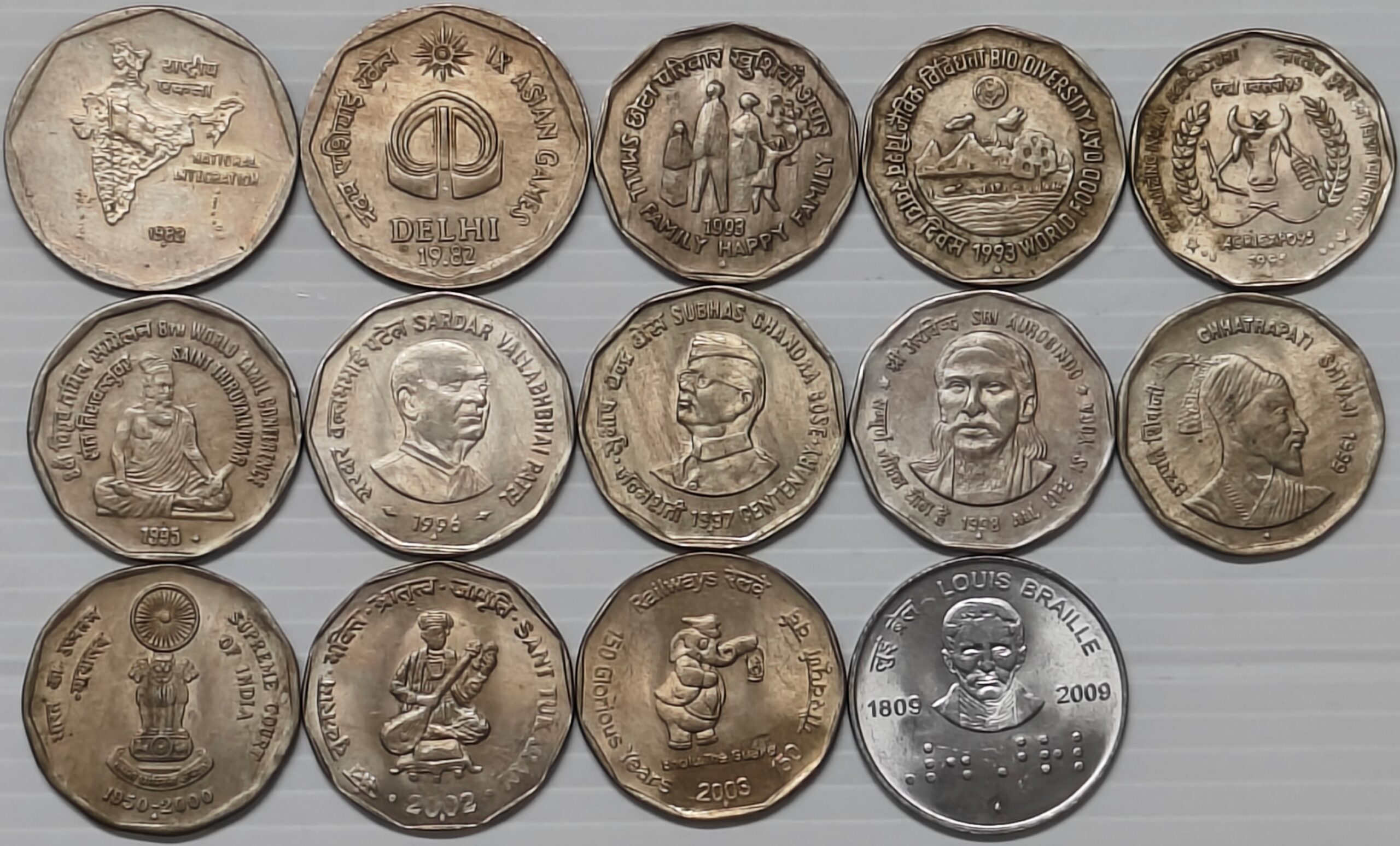 2 Rupees All Mumbai (Except 1994 Water For Life) Commemorative Set of 14 Coins