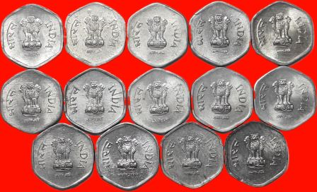 20 Paise Aluminium Bronze & Aluminium Year-wise Complete Set 1968 to 1997 (18 Coins)