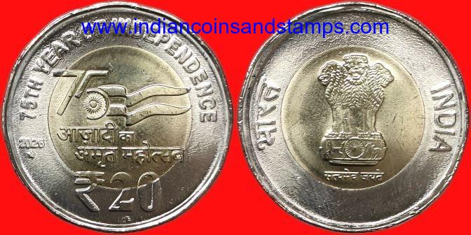 20 Rupees 2026 75th Year of Independence AKAM Hyderabad Nickel Brass