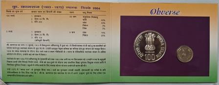 2004 Bharat Ratna Shri K.Kamaraj 1903-1975 Rs.100 & Re.1 UNC Set Mumbai